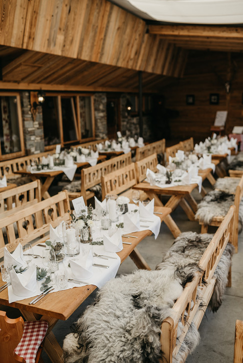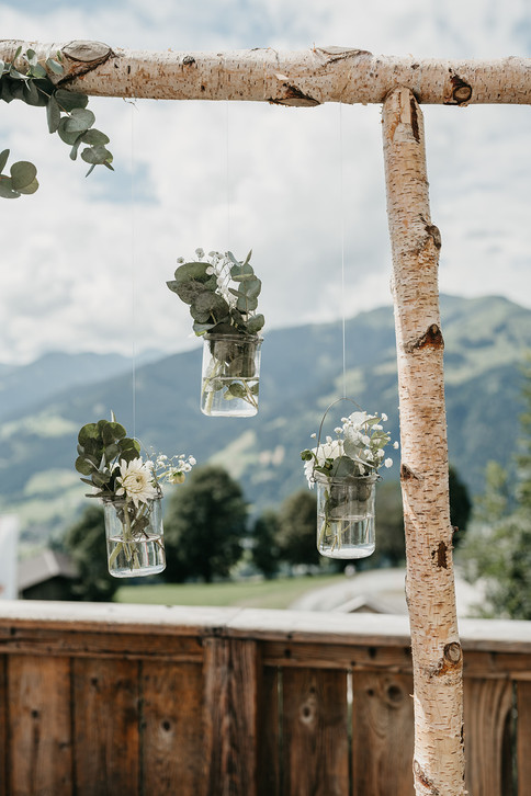 Wer bei Kitzbühel gleich an Schickimicki denkt, der wird sich gleich wundern, denn diese Sommerhochzeit sollte vor allem natürlich, lässig und mit ganz viel Liebe stattfinden, denn zu lange musste das Brautpaar wegen Corona und einem gebrochenem Brautfuß um die Hochzeit bangen. Krawatten suchte man so beinahe vergeblich, die Flip-Flops standen parat, aber die Wettervorhersage für die Freie Trauung sah trotzdem alles andere als rosig aus - dort auf Rosis Terrasse. Aber von vorne: Nachdem ich erst Mal statt einem Hotel gegegnüber ein Hotel mit gleichem Namen ca. 20 Minuten entfernt gebucht hatte, fanden sich die Trauzeugen am Morgen zum Getting Ready bei Braut und Bräutigam ein. Eine Zeit, die ich immer wunderschön finde, denn es liegt so ein gewisses Kribbeln in der Luft, aber so eine entspannte Braut wie dieses Mal habe ich wohl selten erlebt. Vielleicht auch, weil keine der Mamas Hektik verbreitete... Genüsslich wurde da noch einmal gefrühstückt, an den letzen Worten des Trauversprechens gefeilt und ein gechilltes Polaroid-Selfie im Liegenstuhl geschossen bevor es zum "First Look" auf den Hotelbalkon ging. Und da hat der Bräutigam dann ganz schön Augen gemacht als er seine Braut endlich in die Arme schließen durfte. Ein paar Fotos später ging's dann auch schon "auffe auf'n Berg" zur Rosi. Einer Almhütte wie aus dem Bilderbuch mit - ich nehm es schon mal vorweg - fantastischem Essen. Aber das verwundert auch nicht, denn Essen ist die ganz, ganz große Leidenschaft des Brautpaares. Und soll ich euch was verraten? Auch das Wetter hat gehalten - zumindest solange es sollte! Noch im Hotel hat mir die Braut gesagt: "Warum hab ich Depp eigentlich 40 Fächer gebastelt?" Weil auf einmal die Sonne rauskam und den Gästen eine wohlbekommen Abkühlung verschuf. Bei Freien Trauungen bin ich vor allem immer gespannt auf die Traurednerin, denn mit ihr steht und fällt das Ganze. Und ich muss sagen, so viele gute habe ich in der Zeit als Hochzeitsfotografin noch nicht kennengelernt. Jetzt kenne ich eine, die ich mit bestem Gewissen weiterempfehlen kann. "Die ist wie du", hieß es da schon in den ersten Erzählungen meiner Freundin, aber ich kann jetzt bestätigen: "Die ist wie ich!" Auf jeden Fall hat Melanie einen fantastischen Job gemacht und eine sehr persönliche Zeremonie mit Witz, Charme und einer Menge Kreativität hingelegt. Sie hat die Beiden wirklich sehr gut getroffen und ihnen und den Gästen tolle Momente beschert. Gemeinsam wurde mit einem kleinen Stamperl auf die Liebe angestoßen, bevor es zum Flying Buffet wieder zurück zum Ort des "Grillgeschehens" ging.